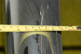 Here's some pics of my measurement technique, which called for the nearest broom handle to be shoved into the muffler. I chose this novel approach as I suspected it would be the best way to visualize what I required with my header design.
